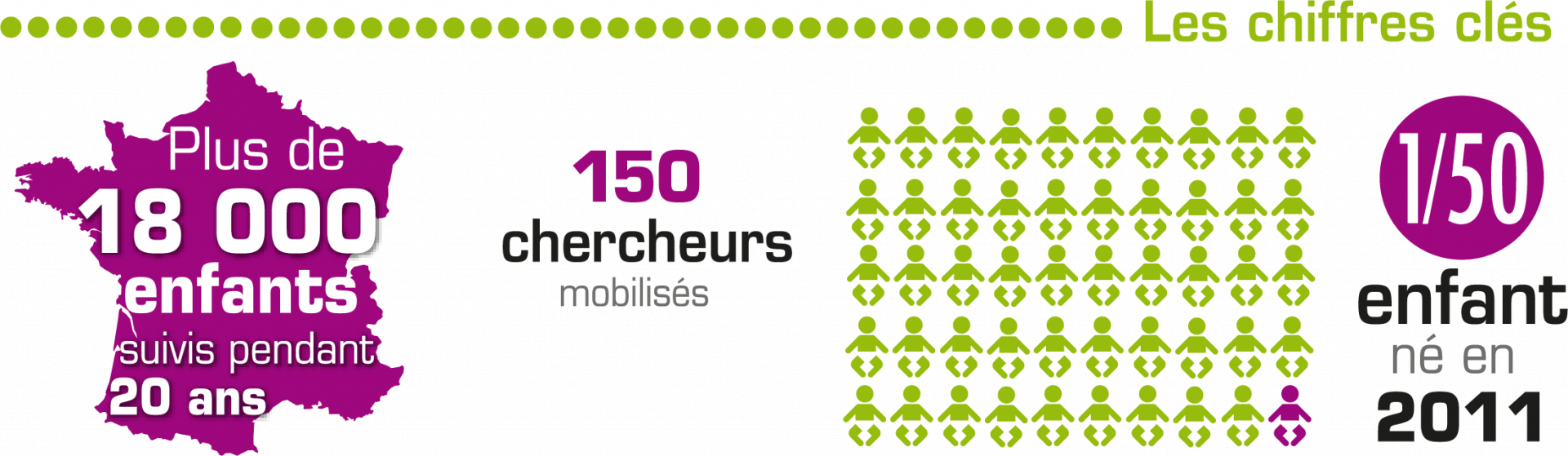 Plus de 18 000 enfants nés en France métropolitaine en 2011 ont été inclus dans l’étude, ce qui représente 1 enfant sur 50 parmi les naissances de 2011. L’observation d’enfants nés à la même période, sur une durée de vingt ans, représente une occasion unique de mieux comprendre ce qui influence leur développement et la façon dont ils trouvent leur place dans la société.